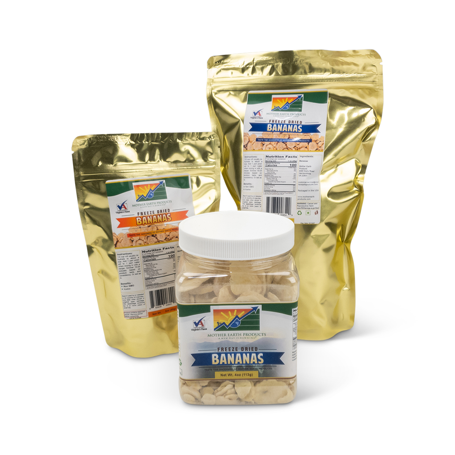 Our freeze dried bananas are high quality freeze dried by reputable food manufacturers around the USA. They are also kosher, and packaged carefully by hand for optimum quality, care, and freshness.