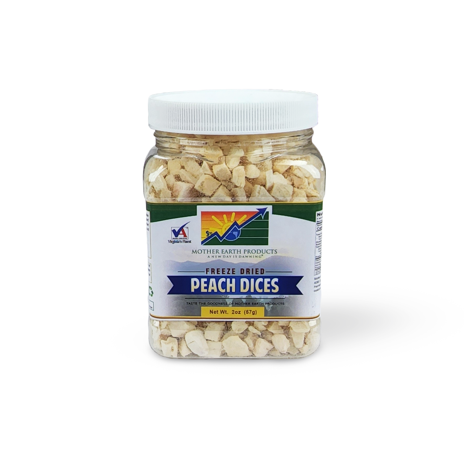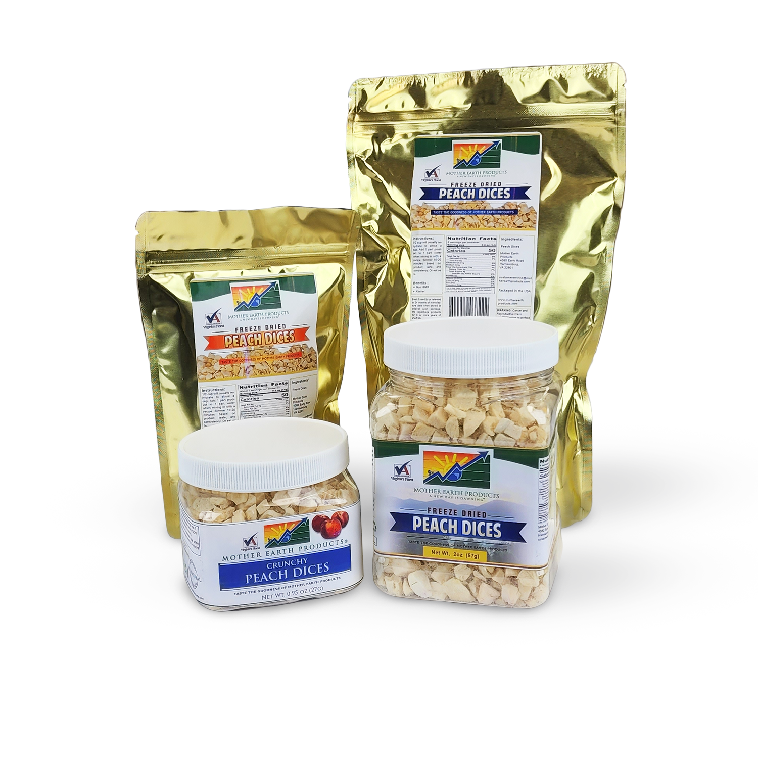 Our freeze dried peach dices are high quality freeze dried by reputable food manufacturers around the USA. They are also kosher, and packaged carefully by hand for optimum quality, care, and freshness.