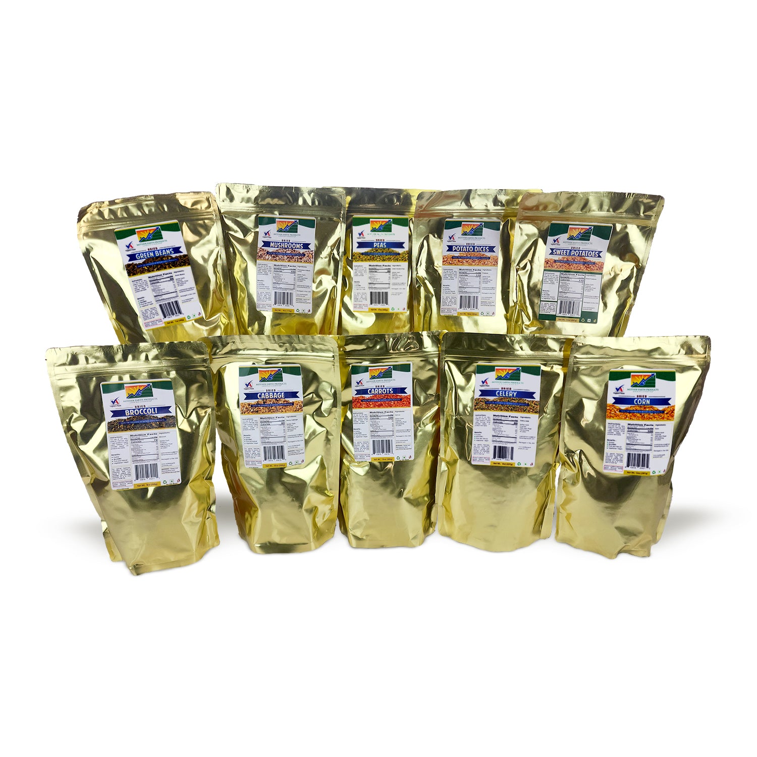 Hate chopping vegetables? Are you tired of throwing out rotten produce? This Kitchen/Cooking Kit is the solution. We’ve put together a grouping of the most useful vegetables for your kitchen and recipes. These dehydrated vegetables have a long shelf-life and are easy to toss into your favorite dishes. No chopping and no fuss. They rehydrate quickly, allowing you to prepare your meals in record time.
